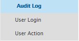 Users are able to view the Audit Log in this menu. They can view Audit Logs for User Action and for User Login.
