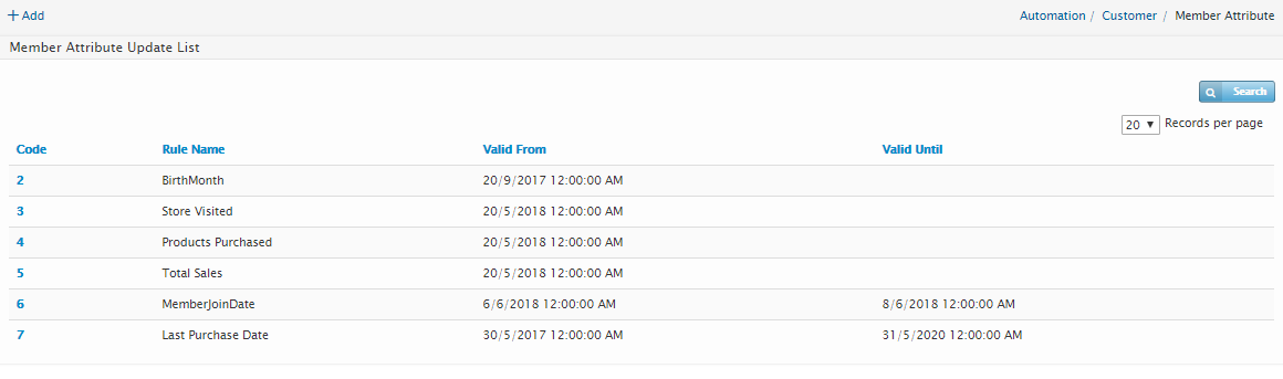 There will be a scheduler program that will manually update the Member Attributes based on the rules set in the Member Attribute Scheduled Update. By default, the list of Member Attribute Update will be displayed when navigating to Process Engine > Member Attribute Update module.