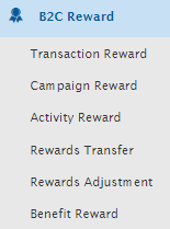 The B2C Reward consists of Transaction Reward, Campaign Reward, Activity Reward, Reward Transfer, Rewards Adjustment and Benefit Reward.