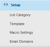Setup menu consists of List Category, Member List, Template, Campaign Management, Email domains and Macro Settings.