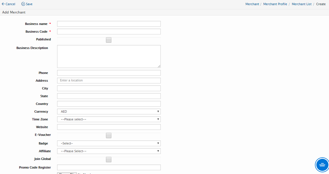 Users are able to add Merchants at this page by clicking “Add” button and enter the following details:
