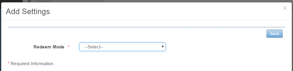 In the Add Redemption Options Popup page, user first has to select a Redeem Mode