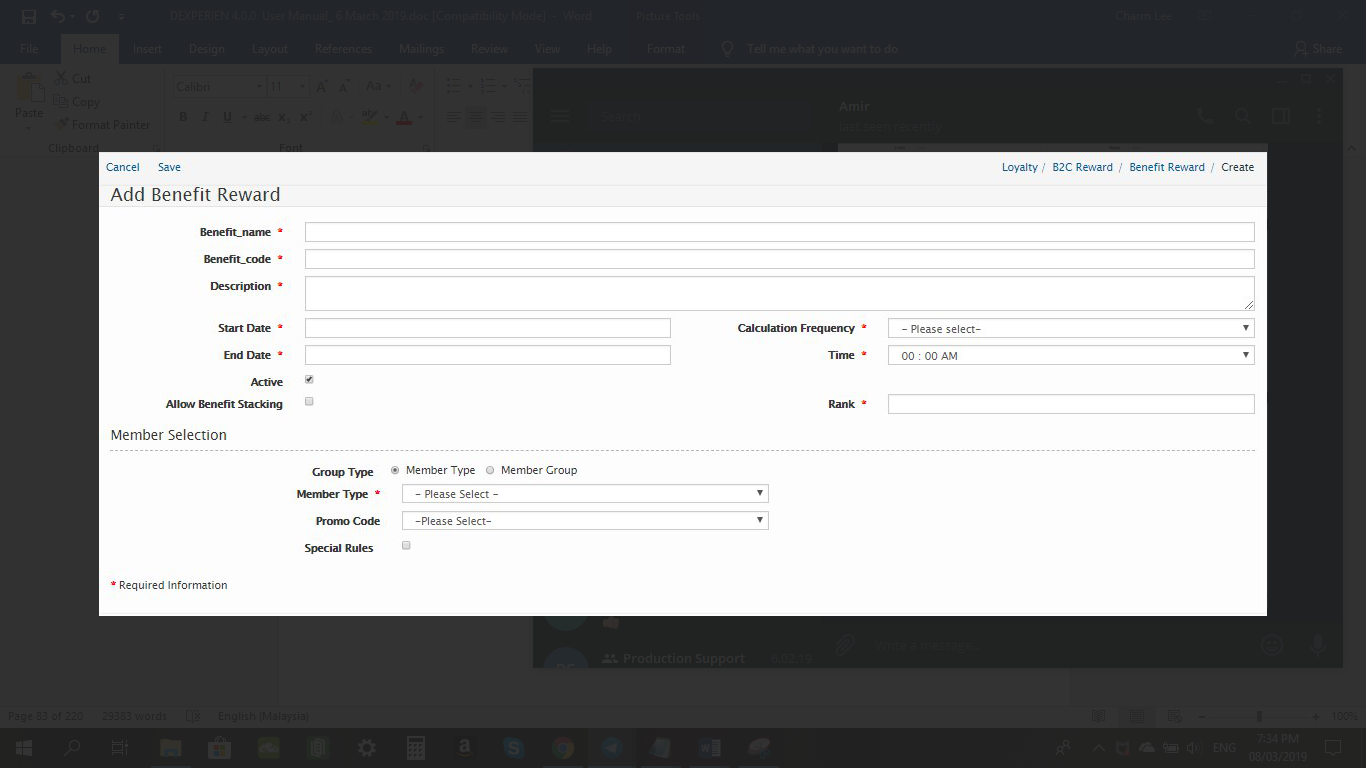 Once all the mandatory fields have been entered, click on the “Save” button located on the top right-hand corner of the page. Users will need to edit the created Benefit Reward to complete the Benefit Rewards points program.