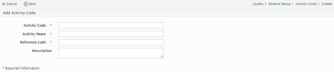 Users are able to add new Activity Code at this screen. Click on the “Add” button located on the top left-hand corner the page. The Activity Code window will be displayed as shown below.