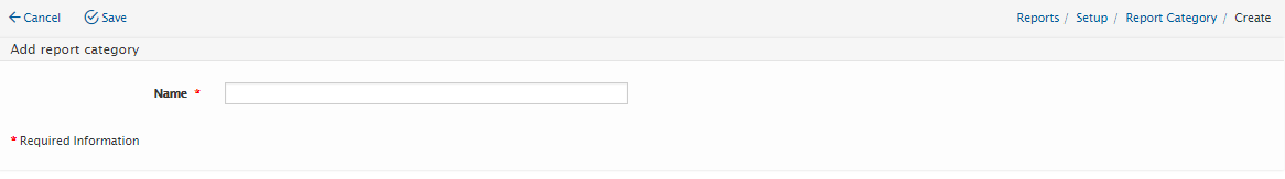 Click on “Save” button to save the details or click on “Cancel” button to cancel the action and return to Report Category page.