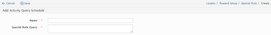 To add a new Special Rule, click on the “Add” button located on the top left-hand corner of the page. The Add Activity Query Schedule window will be displayed as shown below.
