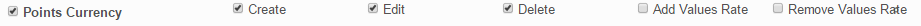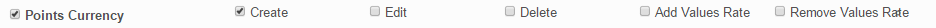 - View, Create, Edit, Delete Point Currency, Add Value Rate and Remove Value Rate