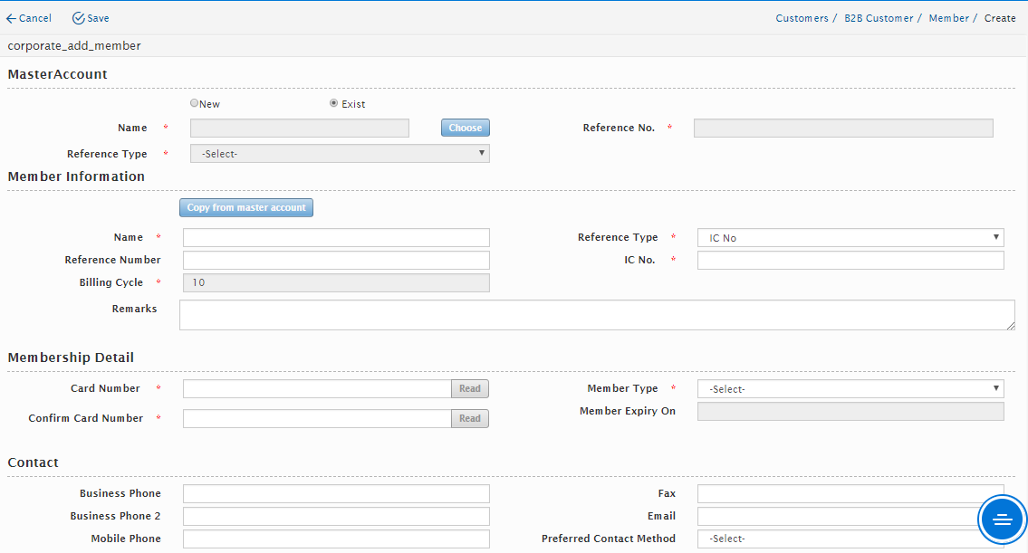 Once all the mandatory fields are entered, the user can click on the “Save” button located on the top right-hand corner to save the information or click “Cancel” button to exit the Add Member page without saving the information.