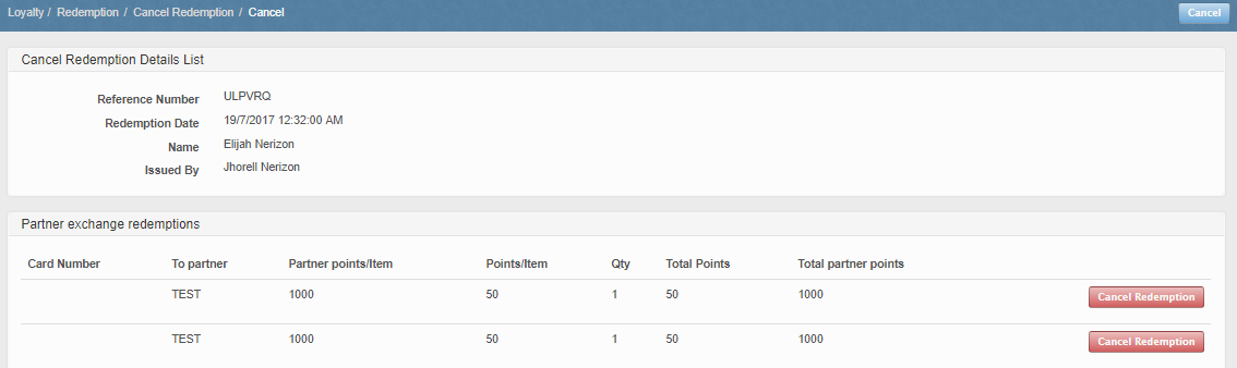 Click on “Cancel Redemption” button to cancel individual product or click on “Cancel All Redemption” to cancel ALL products in that redemption.