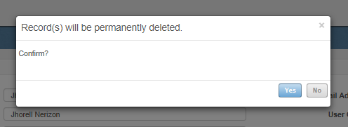 Click on “Yes” button to confirm the deletion of the User.