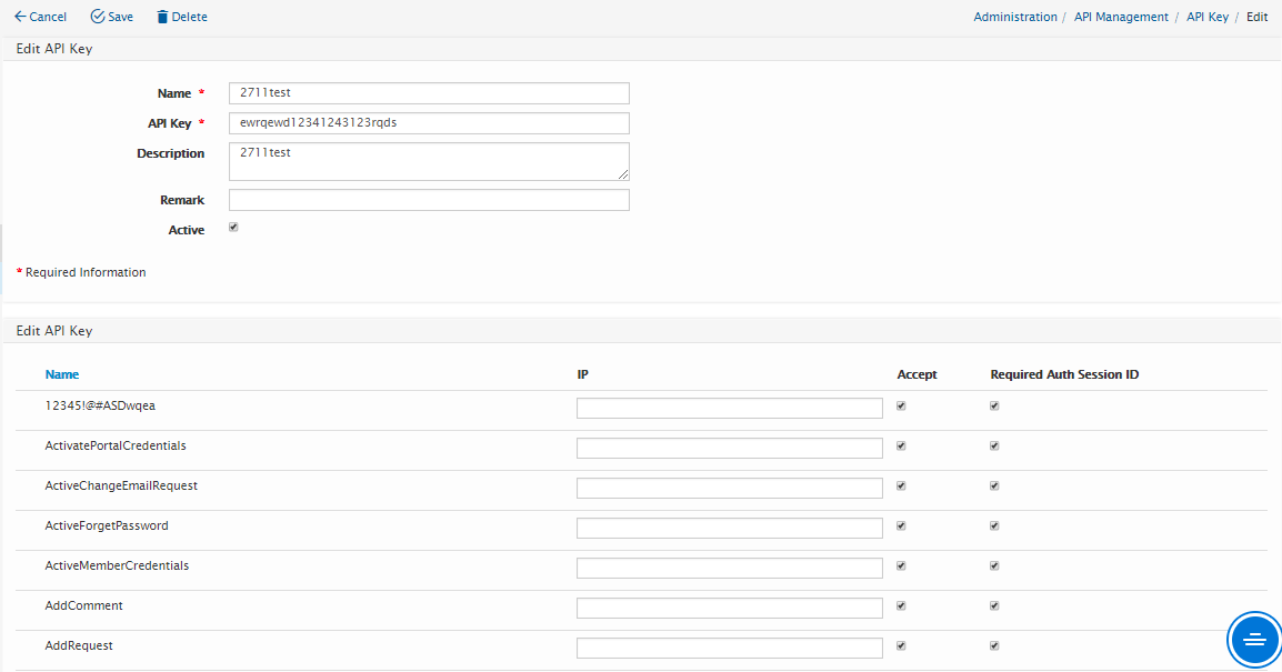 Click on “Save” button to save the details or click on “Cancel” button to cancel the action and return to API Key page.
