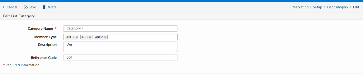 Users can edit List Category in this page. Select the desired List Category and click on the Name to open. The Edit List Category screen will be displayed as shown below.