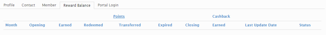 At the Reward Balance tab, users can view the reward balance points for each Member. The statement will be shown according to the billing cycle date.