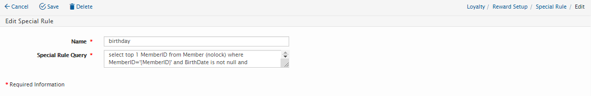Modify the Special Rule Query |