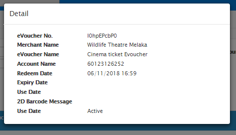 E-Voucher modules list all the e-voucher that was redeemed by the member via mobile application.