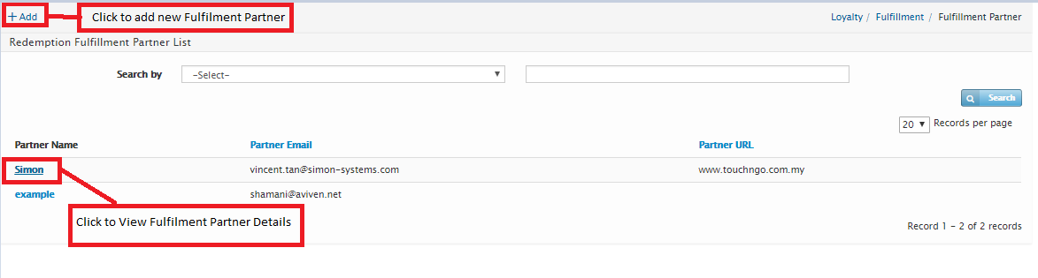 Click on the Partner List menu and users are can search for the partners either by Name or Description.