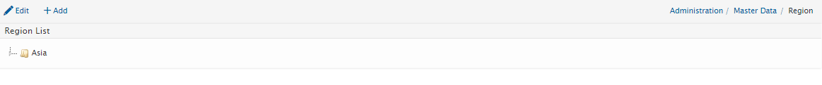 Click on the Administration >Master Data >Region page and users are able to see the list of Region.