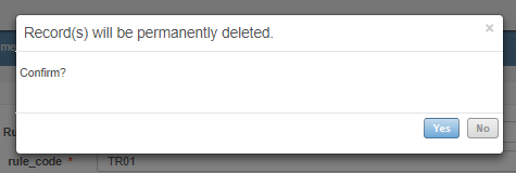 To delete the created Rules, simply click on the “Delete” button located on the upper right corner of the page. A confirmation message will be displayed as shown below. Click on “Yes” button to confirm deletion.