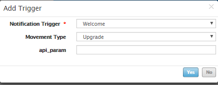 Select the desired Marketing Campaign to be use and API param then click on “Yes” button. The Trigger Notification will be added on the list.
