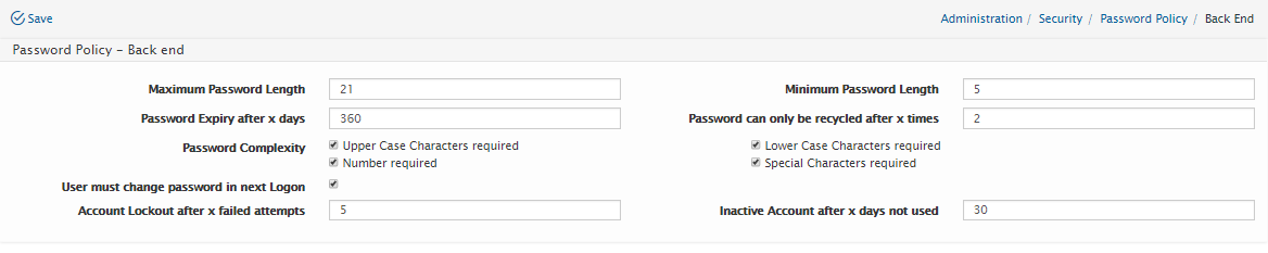Password cannot be recycled after x times. Enter 0 for no checking on this. |