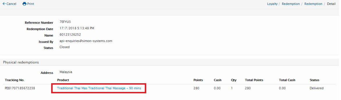 Users are able to View Redemption Details from the Redemption Search page. Search for the required Redemption item – click on the Redemption No. column of the selected record.